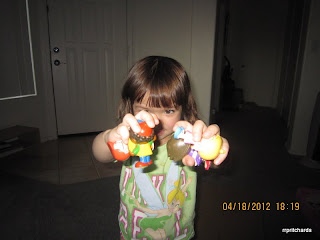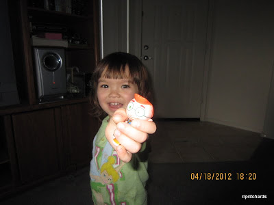 Evie got a Chipmunks DVD that she had been requesting for days now. Her Dada bought it yesterday at Walmart. It's more of a "special treat" for her. She was not feeling good again yesterday morning. She threw up several times within 2 hours keeping us awake until five in the morning. She had diarrhea later during the day. We couldn't exactly figure out what she ate that caused her stomach upset. Last Saturday, she threw up too, but only once.